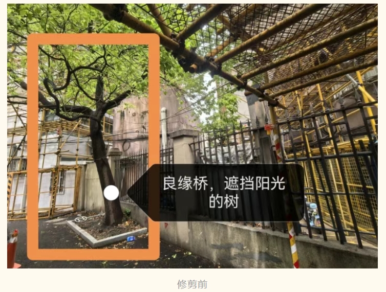 原来,在不久前石泉路街道城运中心“12345”市民服务热线接到居民反映:其住宅周边有一香樟树枝叶因过于茂盛,已严重越过围墙,大面积遮挡了室内的自然采光,影响周边居民的日常生活,希望有关部门能够尽快修剪树木,解决存在问题。