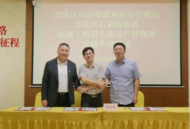 活动中,朱铮、俞峰、吕升昂分别介绍了区房管局、铁路上海局土地房产部及石泉路街道的相关情况,并就党建共建达成了初步意向。随后,三方开展了党建共建签约。