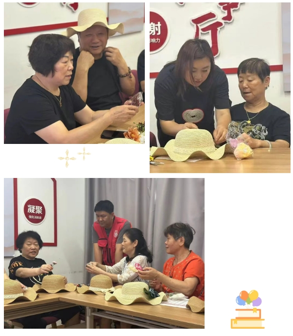 随后,在专业老师的指导下,居民们拿起素色草帽、干花、丝带等材料,发挥创意精心设计专属作品。有人将向日葵与绿叶错落点缀,有人用蝴蝶结与彩带装点帽檐,一顶顶草帽逐渐焕发出独特的艺术魅力。居民张阿姨笑称:“既能学知识,又能动手创作,这顶帽子戴上就是夏天最美的风景!”