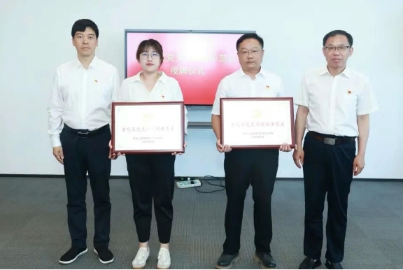 街道党工委副书记季洪雷,街道纪工委书记、监察办主任史曌为获得普陀区党支部建设示范点的基层支部进行授牌。