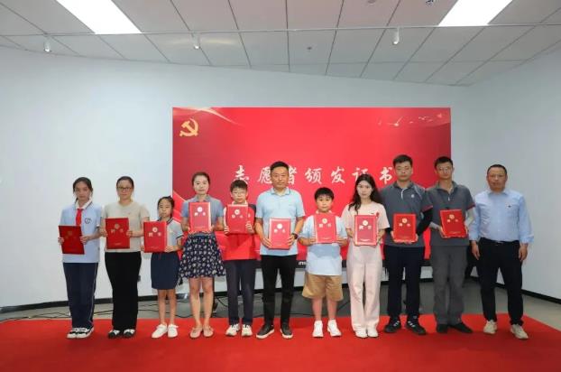 文体中心依托沪西革命史陈列馆和文体中心“两厅一展”红色教育阵地,开展志愿服务等新时代文明实践活动,招募了一批志愿者,涵盖学校师生、街道青年与新就业群体,区委宣传部四级调研员丁荣华为志愿者代表颁发证书。志愿者们接过的不仅是证书,更是传承红色基因的使命。