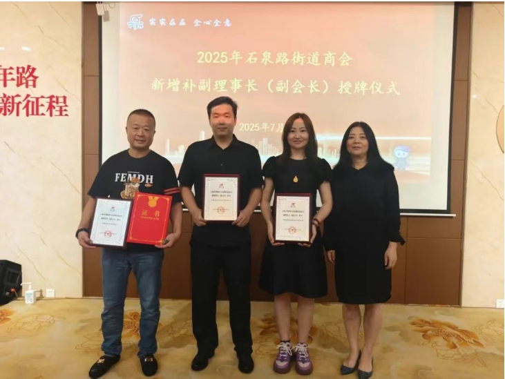 在随后召开的石泉路街道商会第二届理事会2025年第二次会议上,顺利选举增补副理事长(副会长),并由商会会长王丽芳为新任副理事长授牌,进一步壮大了商会领导班子,为推动商会规范运行、提升服务质效注入了新活力。