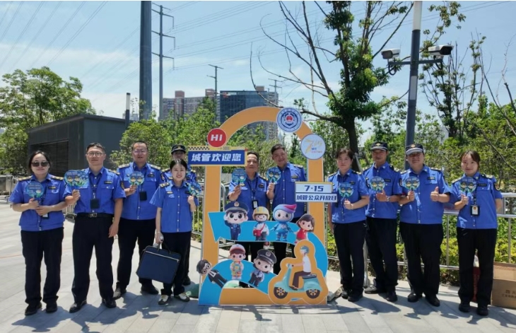7月15日上午,石泉中队走进中海环宇城商圈,向商圈员工、出行市民及外卖骑手发出“共同营造中海环宇城商圈良好出行环境”的倡议。普陀区城管执法局副局长徐培备出席活动。