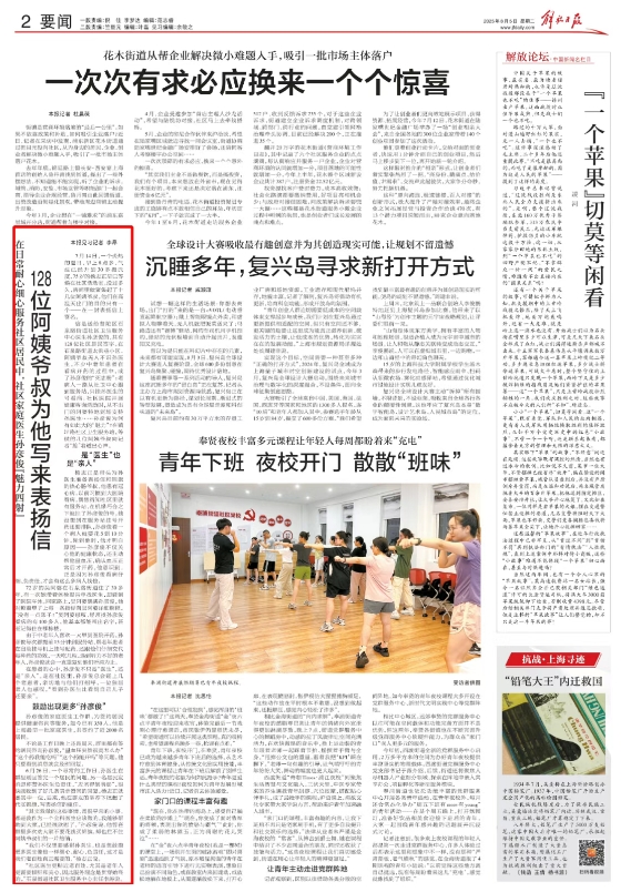 2025年8月5日,《解放日报》要闻版报道:128位阿姨爷叔为他写来表扬信