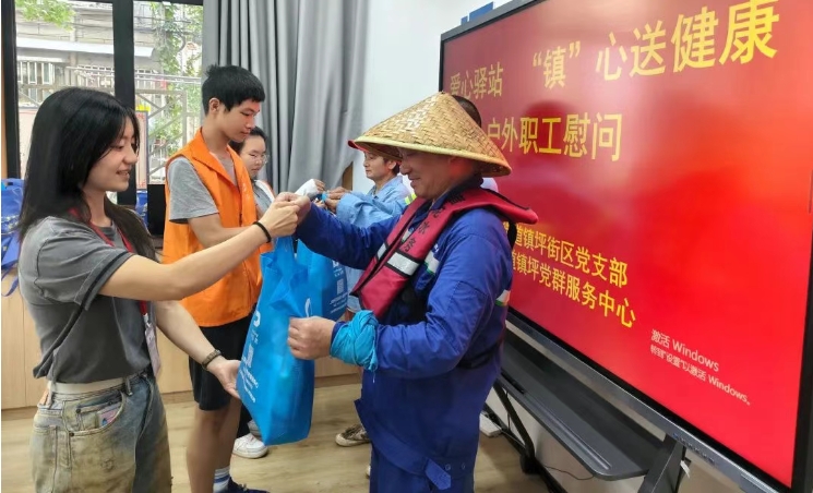 镇坪街区党支部进一步扩大关爱覆盖面,为坚守岗位的街区保安、保洁人员和环卫工人送去“防暑关爱包”,包含清凉油、蚊不叮、防晒伞、水壶等。环卫工人李师傅感动地说:“这些降温用品正是我们最需要的,街区党组织的关怀让我们干活更有劲!”流动党员保安朱师傅也表示:“这些物品很实用件件用得上,也让我们感受到了特别的尊重!”
