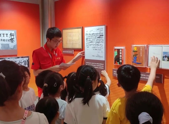 他们通过“炬火初照”“赤焰燎原”“烽火绵延”“奔向光明”四个篇章生动地讲述战火纷飞的年代“赤色沪西”的动人故事。“赤焰燎原” 篇章,讲解员们激情澎湃地讲述了工人运动的蓬勃发展,那些罢工斗争、革命组织的建立;到了“烽火绵延” 篇章则聚焦于在艰难困苦的环境中,沪西工运如何坚持下来并不断发展;在 “奔向光明” 篇章,讲解员们描绘了沪西工运在斗争中迎来胜利曙光的景象,让大家感受到了革命胜利的来之不易。