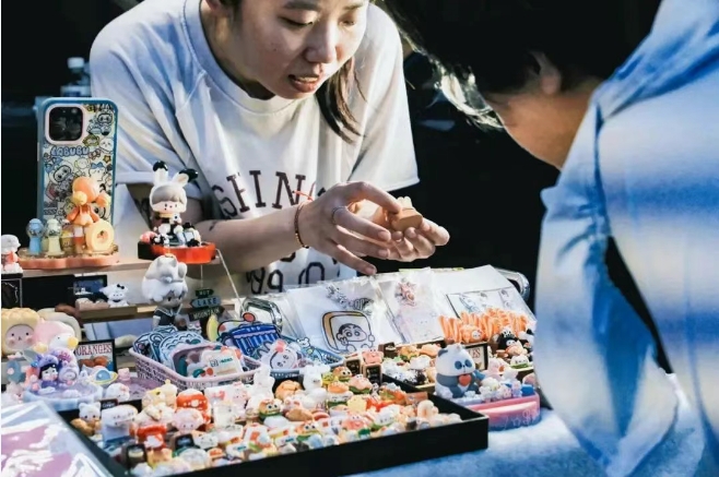 步入夜市,虽属“微型”布局,但业态布局却透出对居民需求的精准把握。夜市摒弃了高温下食品经营的潜在风险,专注打造安全洁净的休闲空间。文创手作占据半壁江山,艺术插画的个性表达吸引目光流连,三成空间赋予生活潮品与趣味零售,余下两成则化为童趣天地。“当前气温太高,食品容易变质,存在安全风险。”胡彪说,“因此,我们主动规避了餐饮业态,在运营过程中,我们发现小朋友特别多,所以增加了一些二次元和3D打印的设施,后续也将通过老百姓的喜好调整业态布局。”