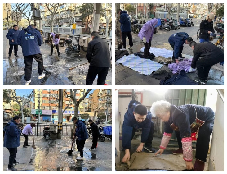 信仪居委会始终坚持以人民为中心的思想理念,形成一个兼具凝聚力与执行力的团结集体。今年2月,寒潮持续侵袭申城,辖区沿街商铺因漏水,经夜间零下低温冻结,在人行道上结了一层冰,给通勤居民出行造成了安全隐患。居委主任孙静在例行晨检巡查中发现险情后,立即启动应急预案:纵向联动上报街道管理办申请支援,同时横向动员集结信仪居委全体社工,带上铁锹、融雪盐等工具赶在早高峰人流到来前完成了清冰工作。大家顾不上休息又分头去各楼道口查看是否有结冰现象,尤其是老年居民较多的楼栋单元,做到及时发现及时处理,全力解除了老年人们的出行顾虑,用实际行动守护着社区居民的安全。