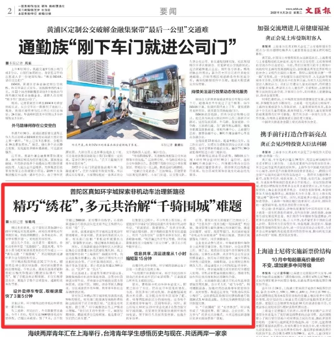 《文汇报》关注:探索非机动车治理新路径 精巧“绣花”,多元共治解“千骑围城”难题