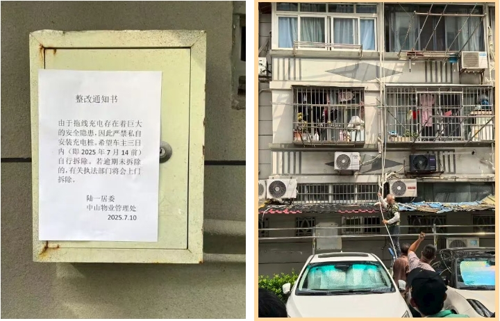 职能部门各司其职、合力高效推进。城运中心汇总诉求点位,精准锁定高频问题区域,为整治提供靶向指引。物业逐户排查登记违规情况,在每处私装点位张贴《整改通知书》,明确自行拆除时限。居委会开展入户宣传,上门向车主细致说明私装危害,详解正规安装流程。社区民警、综合行政执法队开展现场执法,对逾期未整改的违规设施依法拆除。