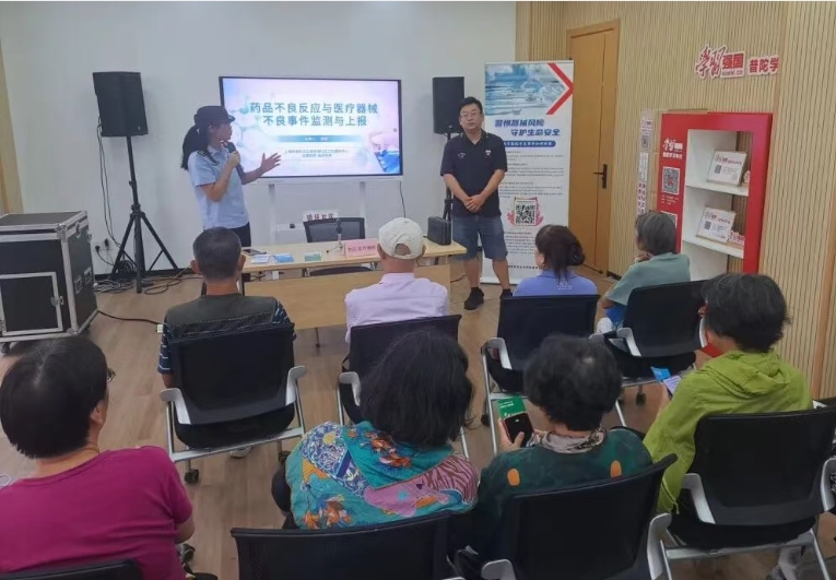 来自石泉街道社区卫生服务中心的不良事件监测医生志愿者围绕“药品不良反应”“医疗器械不良事件”两大核心主题,用居民听得懂的话展开科普讲座。同时,现场演示“普陀区医疗器械不良事件监测码”扫码上报步骤,告知居民可通过扫码填写信息或向购买器械的药店、医院线下上报。