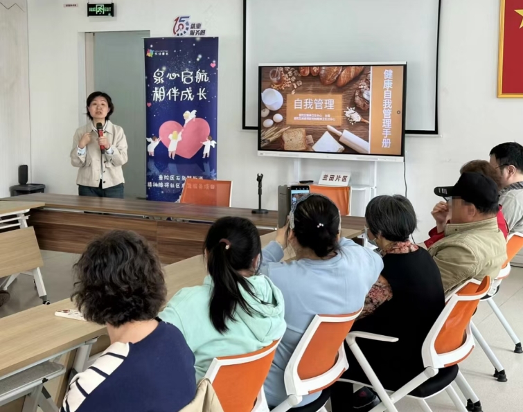 上门辅导之余,服务还以复元理念为主线,在社区康复点开设专业的系列复元主题课程,邀请普陀区精卫专家前来授课,分享最新的康复理念和实用的康复技巧,讲解家庭的日常护理、应对策略以及家庭支持环境的营造,提升了家属的照护水平和战胜困难的信心。