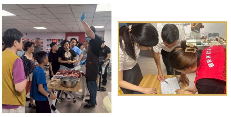 “既然我有这方面的资源,为什么不让邻居们也受益?”怀着这样朴素的心愿,李老师主动站了出来。从前期策划到物料筹备,从邀请讲师到现场主持,他全程投入。活动现场,他既化身“牛肉品鉴达人”,用贴近生活的语言讲解“五好牛肉”的标准;又当好“邻里顾问”,把如何挑到新鲜又划算的牛肉转译成居民一听就懂的“选购指南”。