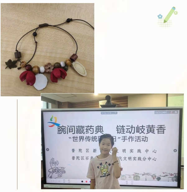 这一日,没有枯燥的讲解,只有触手可及的药材、亲手创作的乐趣,以及在腕间悄悄生长的岐黄之韵——当黄芪的温、白芷的清融入手链,传统医药便成了看得见、摸得着、带得走的文化记忆,在青少年心中种下了传承的种子。