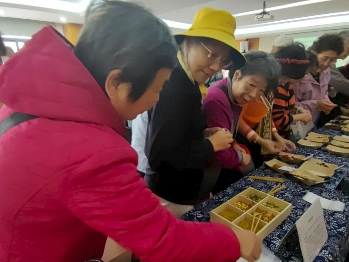 “秋冬干燥,这杯‘菊花枸杞茶’最适合润喉养肝;怕冷的长辈可以试试‘桂圆红枣茶’,暖身又补血。”活动室外的“养生茶歇区”,志愿者正为长辈们端上亲手冲泡的本草茶汤。
