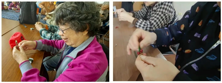 青年志愿者给她身旁的阿婆别上茱萸胸针,阿婆笑着说,“一直说重阳插茱萸,今天可是头一遭真正插茱萸”。两个小时里,长辈们时而互相请教“怎么让珠子不晃”,时而分享“年轻时心灵手巧的故事”,活动室里弥漫着琉璃的光泽与温馨的笑语。