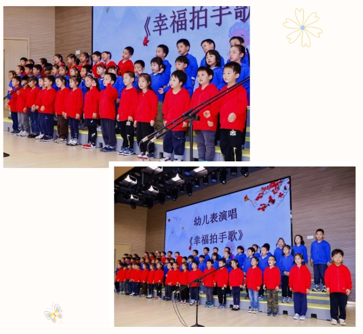幼儿表演唱《幸福拍手歌》——中四班、中六班的小朋友用歌声传递快乐。