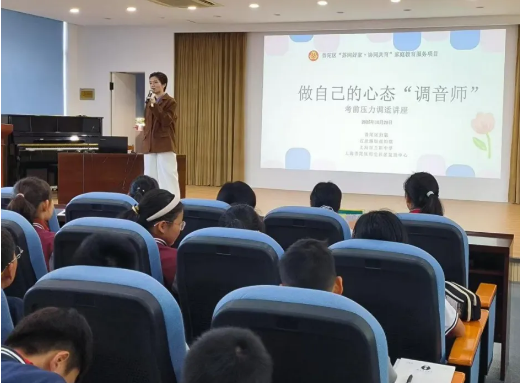 2025年11月10日 来源: 石泉路街道近期,由普陀区妇联指导,街道妇联承办的“苏河好家·协同共育”项目走进兰田中学,为同学们带来了一场别开生面的考前心理调适讲座——“做自己的心态调音师”,帮助大家在关键时期学会与压力共处,激发内在学习潜能。
