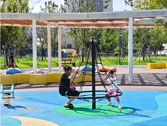 一位市民笑着说:“我家孩子喜欢玩那个摇摇的小鱼座椅,这片区域就是他的欢乐小天地。”