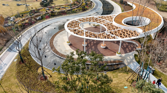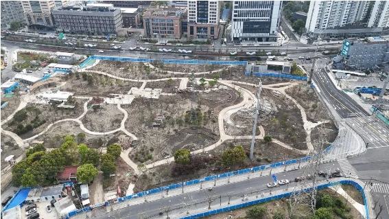 今年1月,升级改造后的武宁公园再次开园,此次改造的主题为“绣之光”,旨在为市民打造一处绣境花田、环境优美、全龄友好的社区公园。具体而言:在高压线下勾勒场地空间,沿街打开的界面、跨越道路的绿环,通过修复场地生态,以跨越春、夏、秋三季的多彩绣球为特色,营造形成缤谷绣廊的植物景观,并与真如绿廊缝合串联;新建活力运动、儿童友好、生态场景等特色体验场所,地下还设有1.3万平方米地下停车库,为广大市民提供服务。