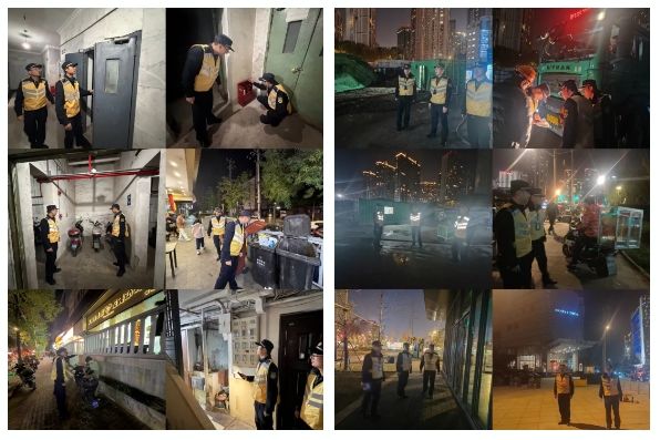 街道综合行政执法队通过“车巡+步巡”的形式开展夜间巡查整治专项行动。其中,重点对辖区内建筑工地、占道设摊情况、老旧小区非机动车飞线充电情况进行现场巡查,并针对辖区内的沿街商铺的门责履行、消防设备、跨门经营情况开展安全检查,全面排查风险隐患。
