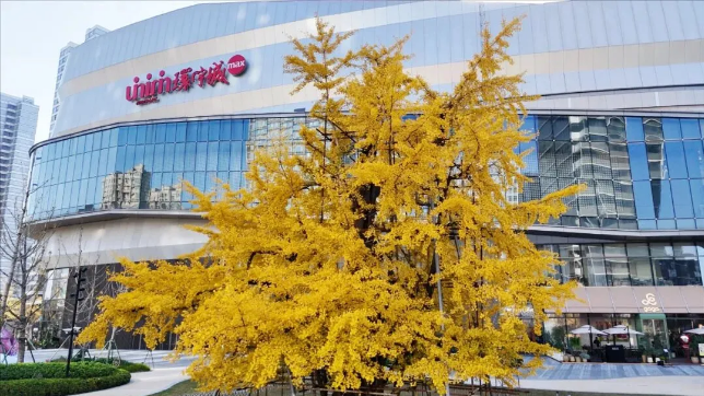 2025年12月08日 来源: 石泉路街道时值深秋,上海环宇城MAX的银杏广场上,编号为0057的古银杏树换上了金黄色的新装,进入了一年中最引人注目的观赏时节。这棵树龄五百余年的银杏树,是普陀区最早被确立保护的古树,它以18.5米的树高、2.7米的粗壮胸围和舒展的冠幅,静静矗立在现代化商业街区中,形成了历史与当下对话的独特场景。