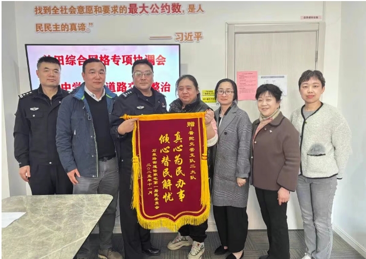 经过半个多月的集中攻坚和综合施策,兰田中学周边的交通拥堵状况已显著改善。家长占道等候、车辆乱停乱放等问题得到根本性遏制,学生和居民的出行时间大幅缩短,安全性显著增强。居民也真切感受到基层组织的强大力量,特意送来锦旗,感谢交警等部门的不懈努力,肯定了网格治理成效。