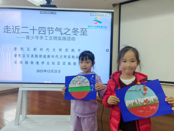 2025年12月22日 来源: 石泉路街道“冬至大如年”——当北方饺子翻腾、南方汤圆飘香,在这个白昼最短、思念最长的日子里,石泉路街道新时代文明实践分中心联合学生社区实践指导站的一场“走近二十四节气之冬至”活动,让孩子触摸这个古老节气的温度,带孩子解锁“数九寒天”的秘密,让冬日的仪式感,从指尖的创作开始,在亲子的笑语中升温。