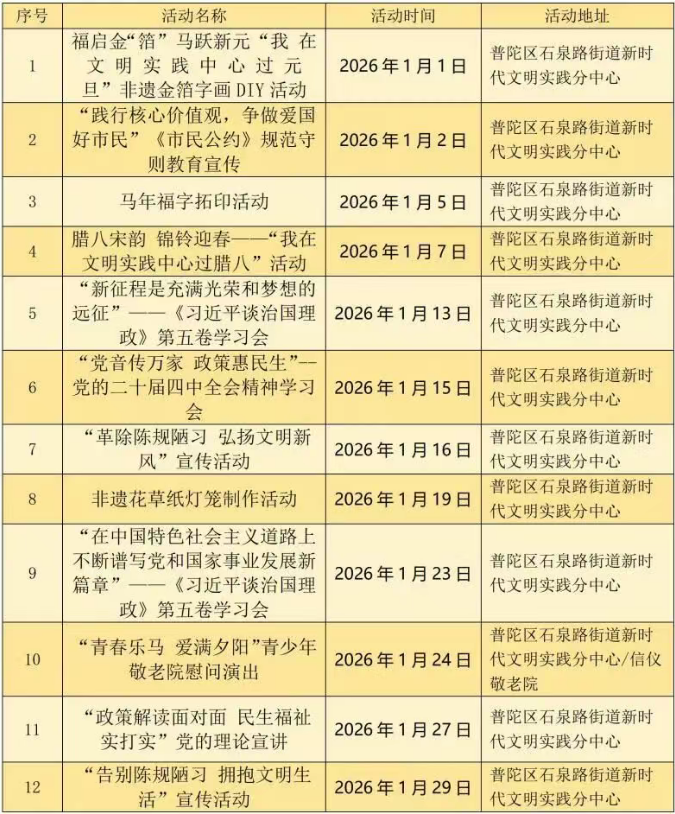 石泉路街道新时代文明实践分中心活动安排表