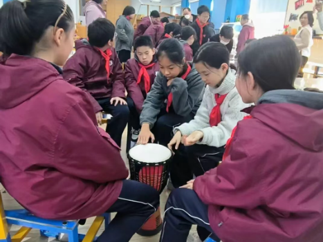 活动以艺术疗愈为核心,以“采样、混音、设计封面、发布与聆听”四个活动环节,让青少年在沉浸式体验中探索自我情绪。在“采样”环节,同学们自由选择喜爱的乐器,以5分钟为时限探寻专属节奏,相同选择的伙伴自动成组,在敲击与聆听中感受情绪的流动。活动还特别引导大家关注彼此节奏的差异。当被问及“是否被他人的节奏打扰”时,不少同学表示,正是在学习包容这些差异的过程中,他们学会了尊重与理解。