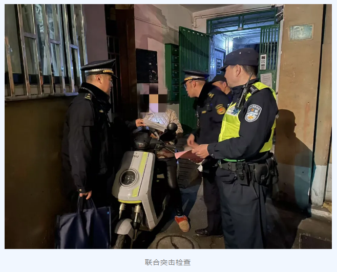 基于摸排掌握的规律,执法队制定了“靶向巡查、错时执法”的策略,近期的一次联合突击检查,于晚间21时许开展。在洵二居民区,石泉路街道综合行政执法队队员许立铭、刘大伟,与居民区党总支书记、社区民警、物业人员组成联合小队,在检查中发现了一些私拉电线、蓄电池入户等行为。“阿姨,电瓶车入楼栋害人害己。一定要去室外停车区充电停车啊!”执法队员当场对违规的居民进行批评教育并责令整改;居委书记耐心引导居民使用已建成的集中充电桩;社区民警则从法律责任角度予以告诫。这种“现场纠正+教育引导+普法宣传”的组合式执法,既体现了力度,也传递了温度。
