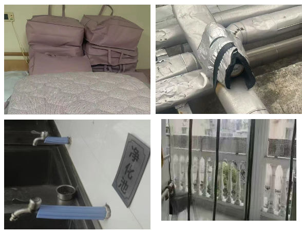 物资准备到位。物业公司全面落实各项防御措施,足量储备防滑草垫、除雪除冰工具等应急物资。同时,加大对外露供水管、水箱、水表、阀门等共用供水设施设备以及住宅建筑外立面、附属构件、附着物巡查力度,严格落实灾害天气期间值班值守制度,确保第一时间做好应急抢修工作。