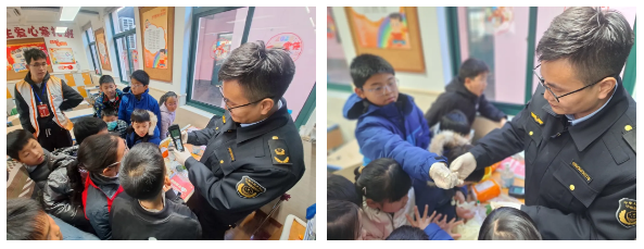 此外,石泉市场监管所为学生生动地讲解了食品安全科普知识,如预防食物中毒,校园周边食品安全,正确有效洗手等。鼓励学生们积极宣传“你送我检”快检服务和食品安全知识。在互动环节,孩子们争相举手、积极回答食品安全知识问题。