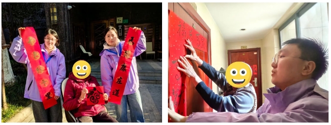 墨迹干透,祝福升温。参与者们分成若干小组,手持亲手拓印、还散发着淡淡墨香的福字与春联,叩响了社区老人的家门。这不仅是一次暖心的问候,更是一程温情的接力。“阿姨爷叔,我们提前给您拜年啦。”一声声祝福让老人们倍感温暖的同时,更是社区温情的传递。