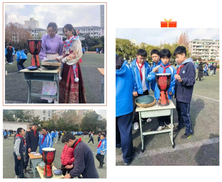 非洲鼓与空灵鼓的韵律自由流淌,同学们或独自轻敲,或组队合奏。没有固定的节奏,只有随心的表达,“敲鼓的时候,心里的烦闷好像都被敲走了。”