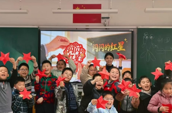 除了科学探索,寒托班更注重孩子们的思想引领,开设红色记忆·巧手传承课程。志愿者们以红色故事为切入点,为孩子们讲述革命先辈的奋斗历程,解读红星背后的信仰与力量。随后,志愿者示范剪纸的基本技巧,手把手指导孩子们操作。孩子们手持剪刀、认真裁剪,一张张红纸在指尖变成一颗颗鲜艳的红星,孩子们在趣味手作中感悟红色精神。