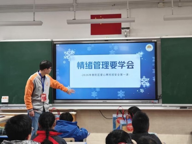 开班首日,安全先行。寒托班“安全第一课”围绕青少年寒假期间高频安全隐患,将防溺水、交通安全、消防安全等生活安全知识融入趣味问答、情景模拟等互动环节。课堂上,孩子们踊跃抢答,在轻松愉悦的氛围中轻松掌握实用安全技能,安全意识也在潜移默化中深深扎根心底。