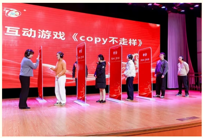 趣味互动环节让现场欢乐持续升温。“COPY 不走样”游戏中,12位职工戴降噪耳机以动作传递快乐,“策马传信”间笑语连连;线上“万马奔腾”摇一摇游戏联动全场,大家踊跃参与,惊喜好礼“马到擒来”,6位职工成为今夜的“手速王”。