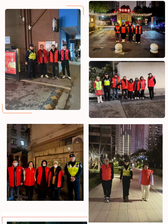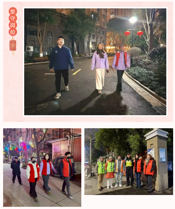 当千家万户沉浸在年夜饭的温馨与节日的喜悦中,街道平安志愿者们依然坚守岗位,他们身着志愿者马甲,在居民小区、重点路段开展除夕值守巡逻工作,细致排查安全隐患,提醒居民注意用火用电安全,用默默坚守换来城市的井然有序,尽心尽责守护群众的平安幸福。