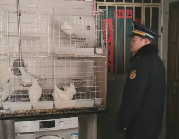 接报后,执法队员赶赴现场调查。经核实,鸽子系由该楼道一租客近期饲养。面对执法问询,该租客电话中表示困惑,认为“鸽子系个人宠物,饲养与自家门口并无不妥”。针对这一认知误区,执法队员并未简单援引法条,而是通过耐心释法,逐步阐明相关法规。