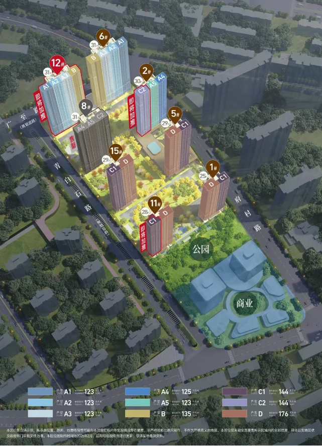 据介绍、本次加推2号楼、11号楼及12号楼,总共176套,涵盖123㎡和135㎡户型,以及首开56套144㎡四房户型。
