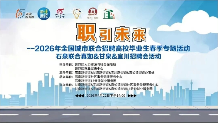 “职引未来--2026年全国城市联合招聘高校毕业生春季专场活动”——石泉&甘泉&宜川&真如“15分钟就业服务圈”系列活动