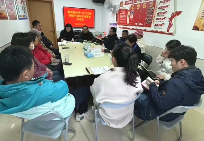管一居委会在了解到成阿姨的诉求后,将此事上报至铜川综合网格。在接到居民反映后,铜川综合网格第一时间启动“网格吹哨、部门报到”机制,主动靠前介入,打破部门壁垒、整合治理资源,联动街道城运中心、物业公司,通过线上系统查阅产权证明,确认该商铺及空调安装位置确属小区红线管理范围,厘清了产权归属与管理责任,为后续矛盾调解提供坚实依据,推动纠纷处置从“各说各理”走向“有规可依”。