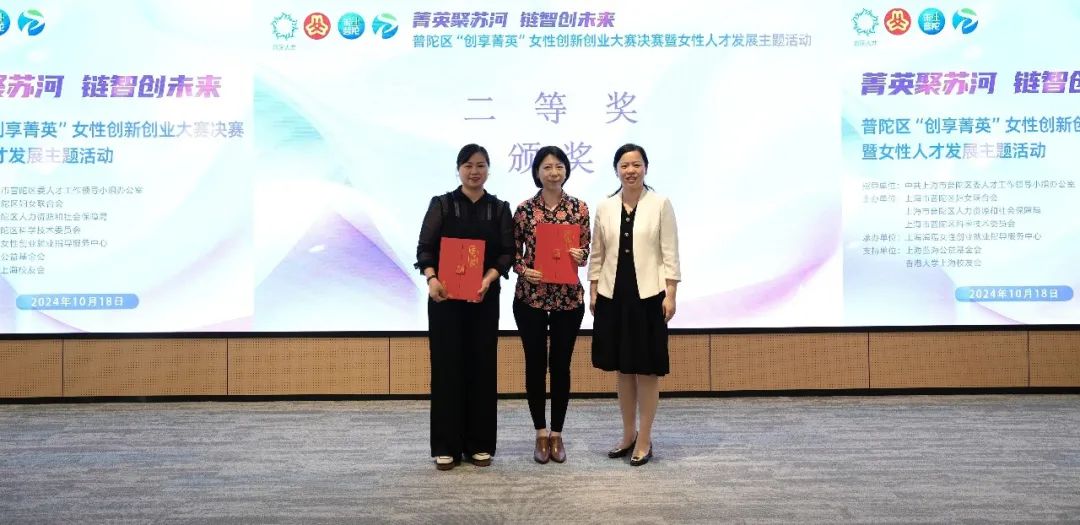10月18日,由中共上海市普陀区委人才工作领导小组办公室指导,区妇联、区人社局、区科委联合主办,上海海蕴女性创业就业指导服务中心承办的“菁英聚苏河 链智创未来”——2024普陀区“创享菁英”女性创新创业大赛决赛暨女性人才发展主题活动在“海聚英才”路演大厅顺利举办。