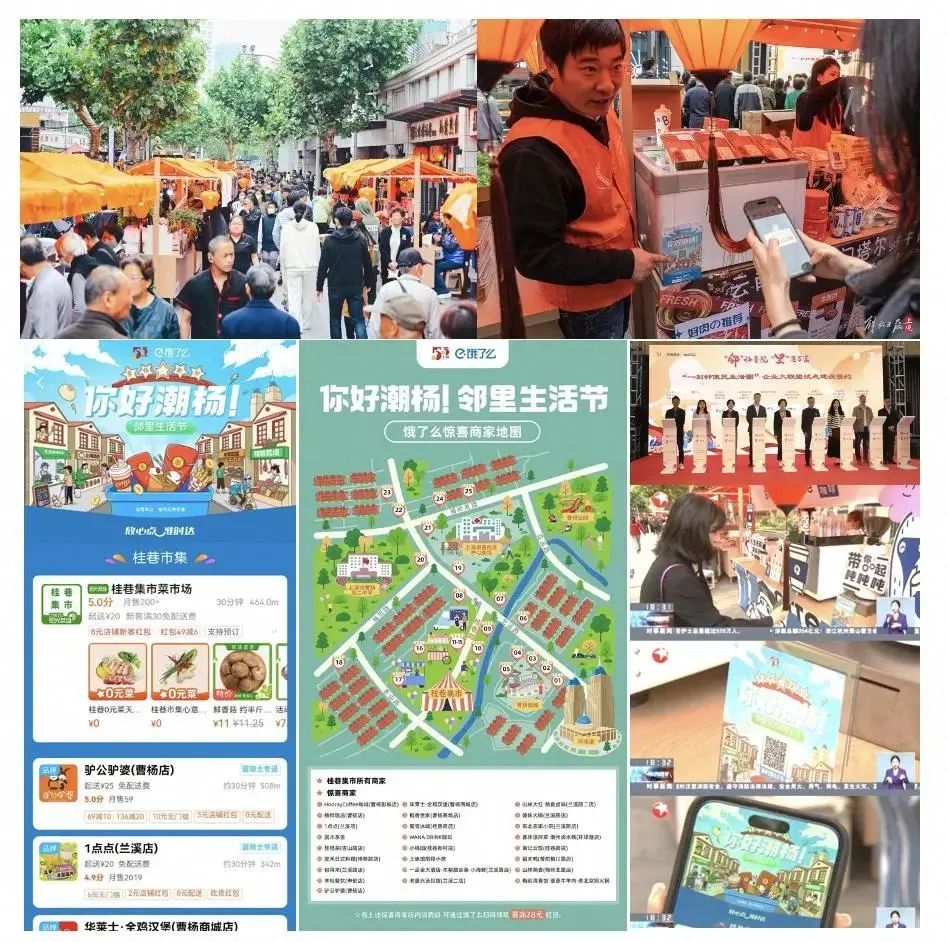 社区“3公里”就能体验吃喝玩乐游购娱为一体的服务?“桂巷集市”“桂巷坊”步行街作为曹杨知名社区商业聚集点,饿了么与辖区曹杨新村街道、物业管理方西部集团联合打造“你好潮杨数字集市”及“你好潮杨·饿了么惊喜商家地图”,引入高流量至专题会场、还配备专门的集市红包补贴,同时对集市相关商家开通“绿色通道”进行数字化升级。通过本地即时电商赋能,带动社区周边商业生态的数字化升级,使居民可以享受更便捷各类服务。