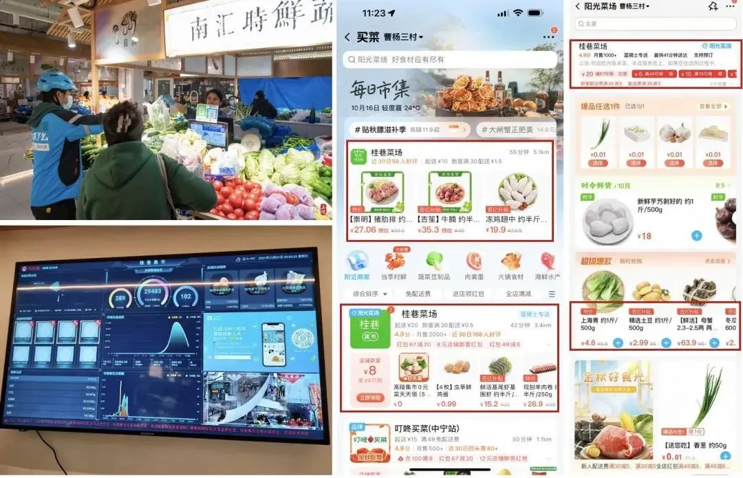 2023年5月,饿了么启动“阳光菜场”项目,与西部集团、壮品集团合作,将“桂巷菜场”打造为全新“阳光菜场”。让“数字经济”与农贸市场业态的场景应用结合,不仅提升了销量还实现食品溯源、智能收银、动态监控、大数据整合等功能,将“智慧化”融入“烟火气”。“菜品新鲜、环境舒适,家门口的菜市场越来越好了,门口显示屏有实时菜价,摊位上也都明码标价。”消费者胡女士在体验过后惊喜地说到。迄今,饿了么阳光菜场已经与永昌菜市场、万有、壮品等多家普陀区内国营及私营菜场连锁集团达成合作,实现了普陀区全覆盖;全市复制该模式,已实现60余家“阳光菜场”上线,有超过30万用户用饿了么“阳光菜场”买菜,其中近30%的用户每周至少购买4次。
