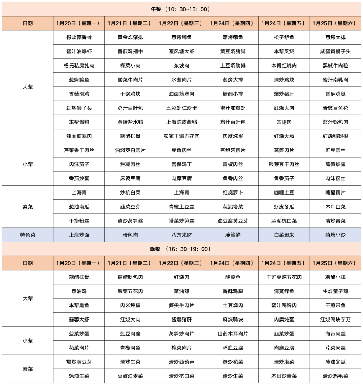 桃浦社区食堂一周菜谱抢先看(1.20-1.25)