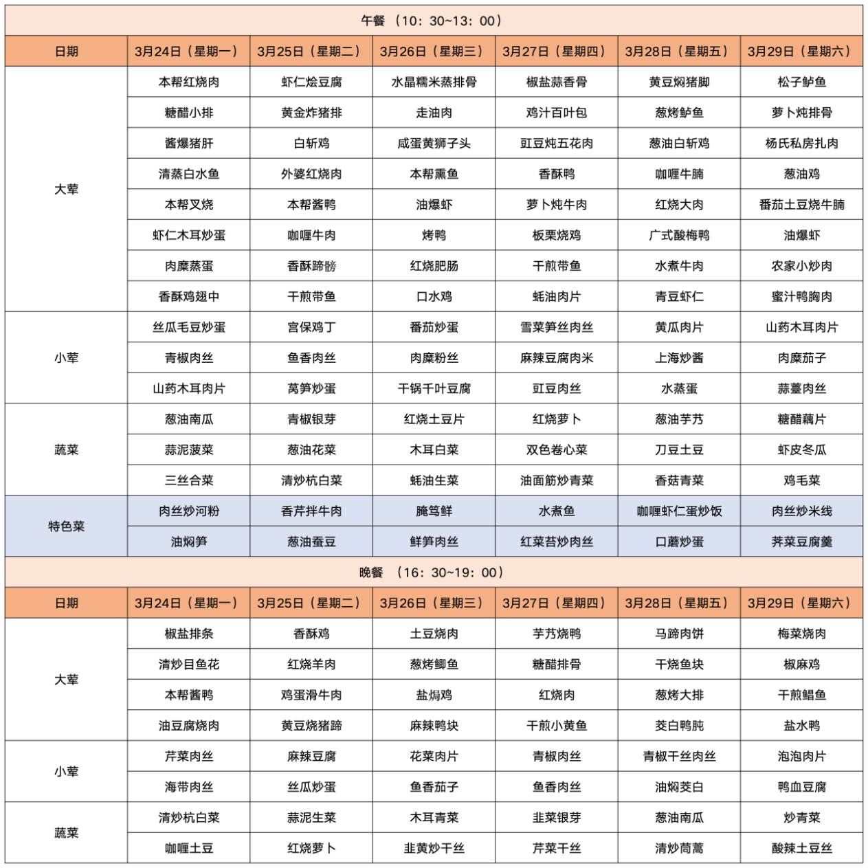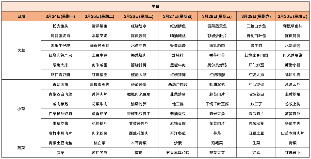 【TOP菜谱】桃浦社区食堂一周菜谱抢先看(3.24-3.30)