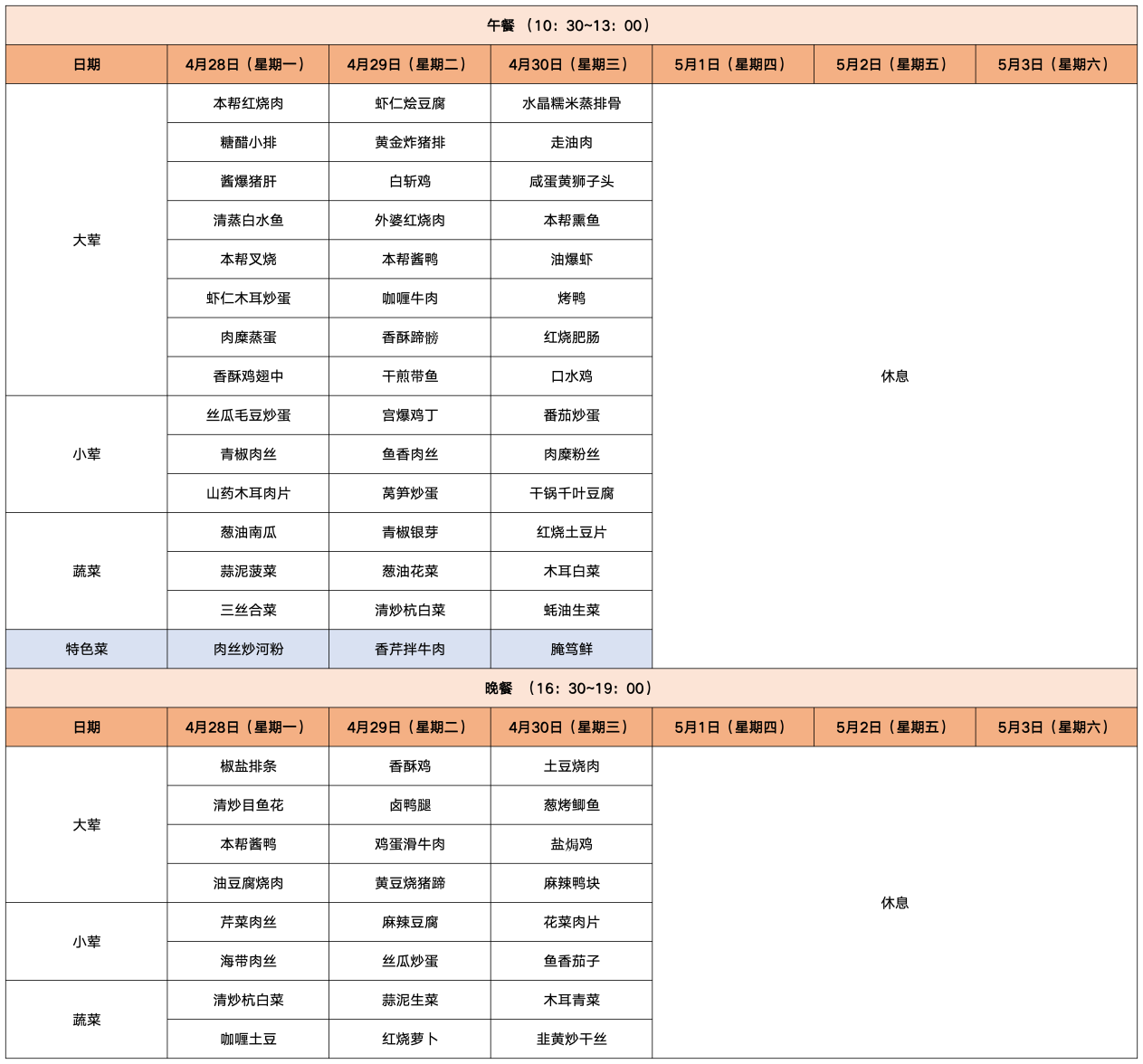 【TOP菜谱】桃浦社区食堂一周菜谱抢先看(4.28-5.4)