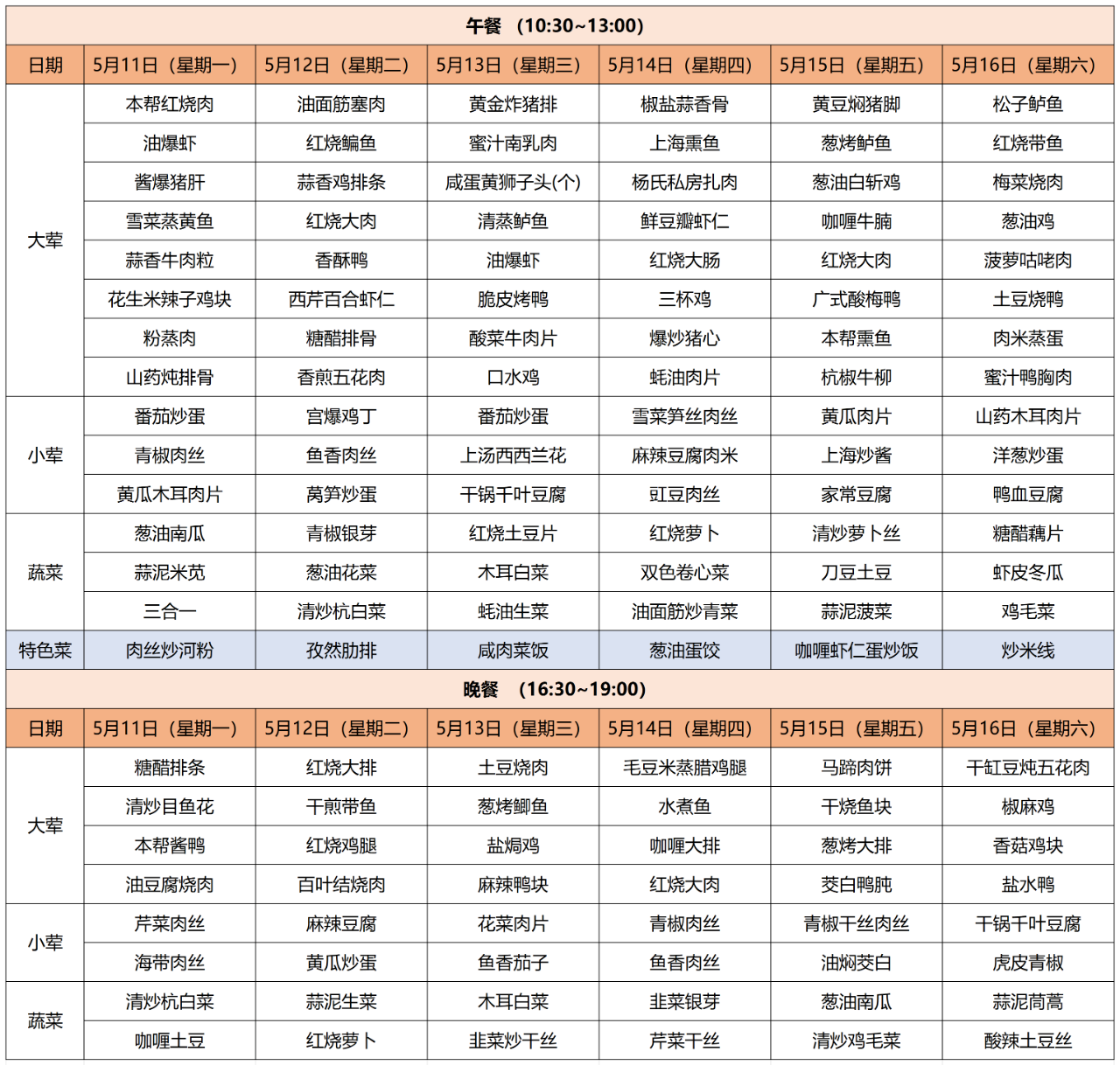 【TOP菜谱】桃浦社区食堂一周菜谱抢先看(5.12-5.18)
